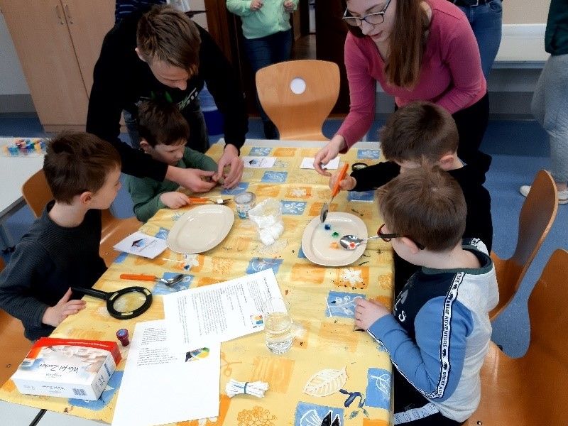 Im Rahmen der Kooperation mit der Kindertagesstätte „Märchenland“ Wurzen fand am 14.03.2023 ein Forscher-Projekt für die Kinder dieser Einrichtung statt. Die Schülerinnen und Schüler der Berufsfachschule für Sozialwesen, 2. Ausbildungsjahr, hatten kleine Experimente zu verschiedenen Themen geplant und vorbereitet.